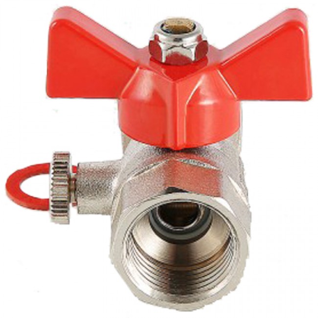 Латунный никелированный кран для подключения манометра. Присоединение измерительного прибора осуществляется с помощью накидной гайки с уплотнением в виде паронитовой прокладки. Седельные кольца шарового крана выполнены из тефлона, уплотнение штока изготовлено из EPDM. Вращение ручки крана позволяет произвести подключение манометра к измеряемой среде, его отключение, сброс воздуха из манометра, сброс воздуха из измеряемой среды. Предусмотрен резьбовой штуцер для присоединения контрольного (поверочного) манометра. Кран предназначен для систем с рабочим давлением до 16 бар и максимальной температурой 130 °С. Резьба подключения крана – внутренняя.