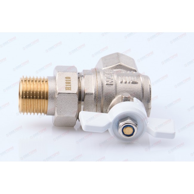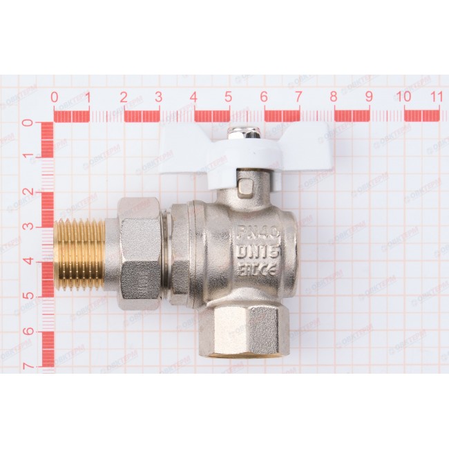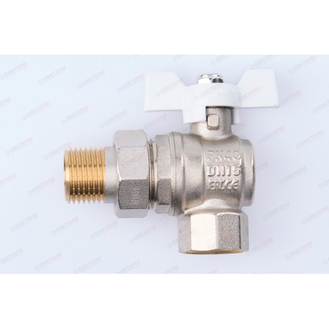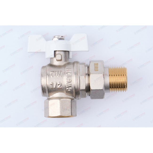 Кран шаровой с американкой 1/2" угловой, белая бабочка DE1235N Tim