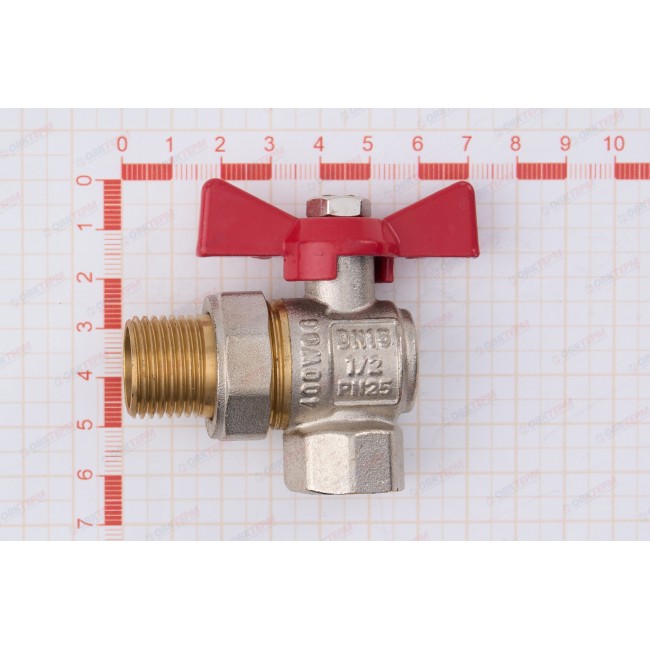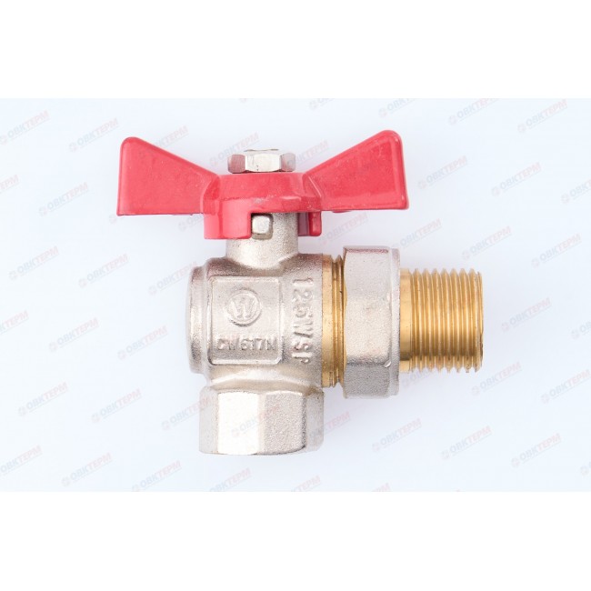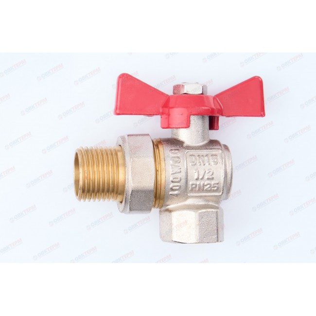 Кран шаровой с американкой 1/2" угловой, внутренняя-наружная резьба, бабочка ТСМ