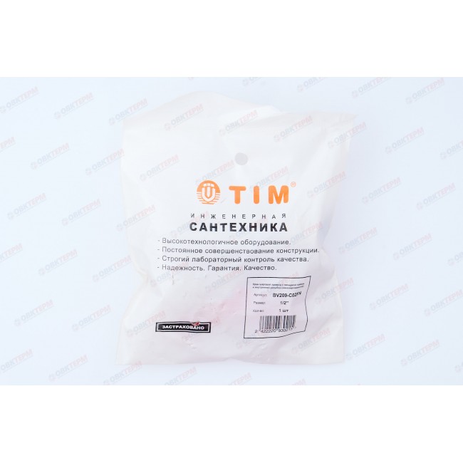 Кран шаровой с накидной гайкой 1/2" внутренняя-внутренняя резьба, прямой BV209-C02FN Tim