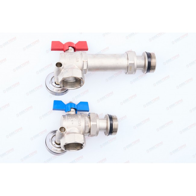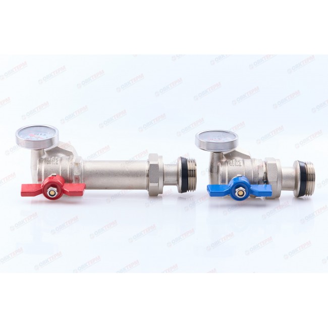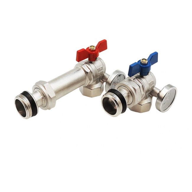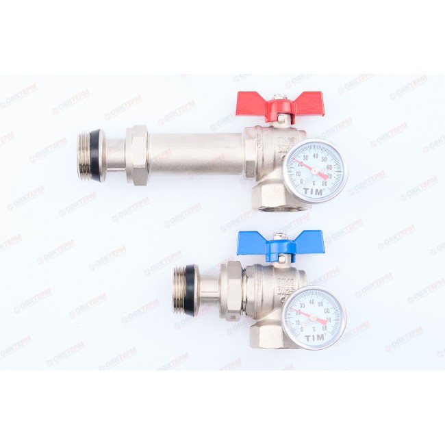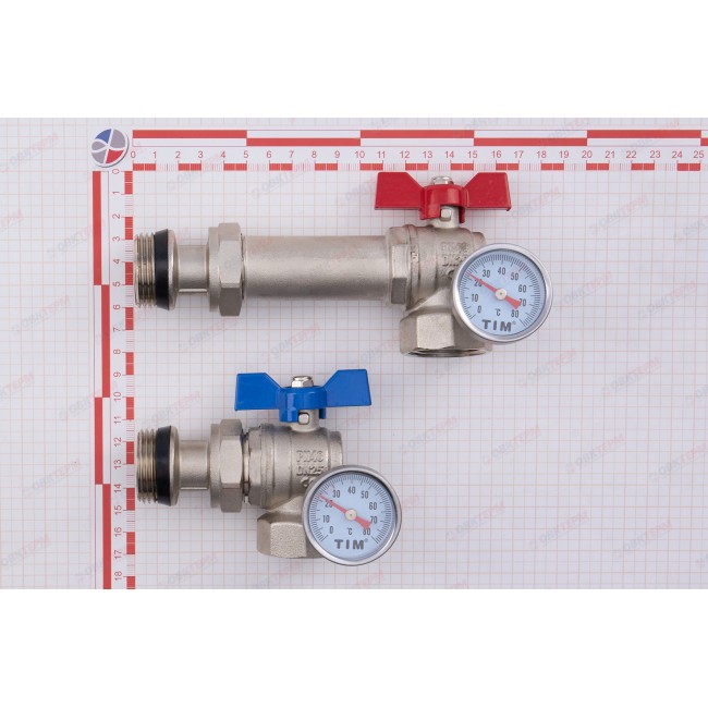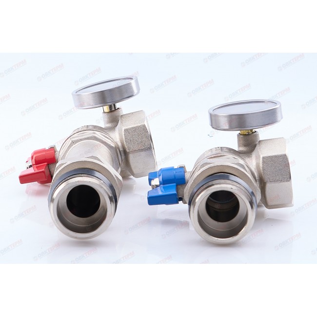 Кран шаровой угловой с полусгоном и термометром для коллекторных групп 1