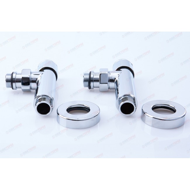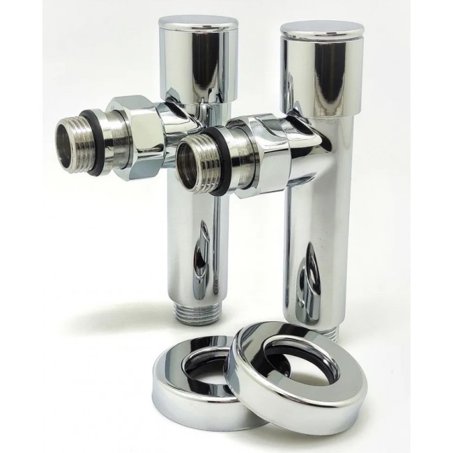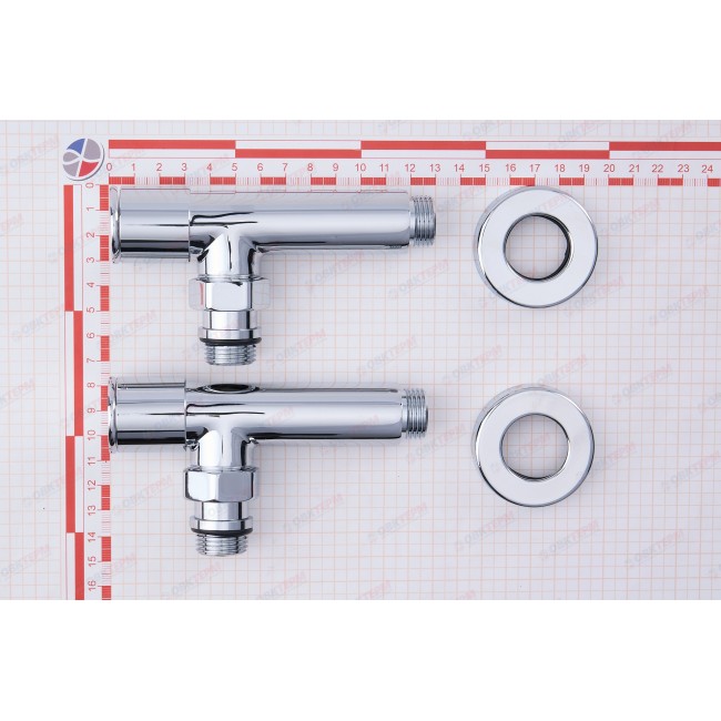 Количество в коробке: 20пар. Количество в упаковке: 1 пара. Вентиль угловой запорный, выполняет функцию регулирования температуры полотенцесушителя. В случае необходимости демонтажа полотенцесушителя - необходимо закрутить вентили до упора, что позволит демонтировать без отключения системы ГВС или отопления. Материал: латунь Покрытие: хром