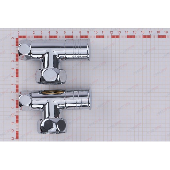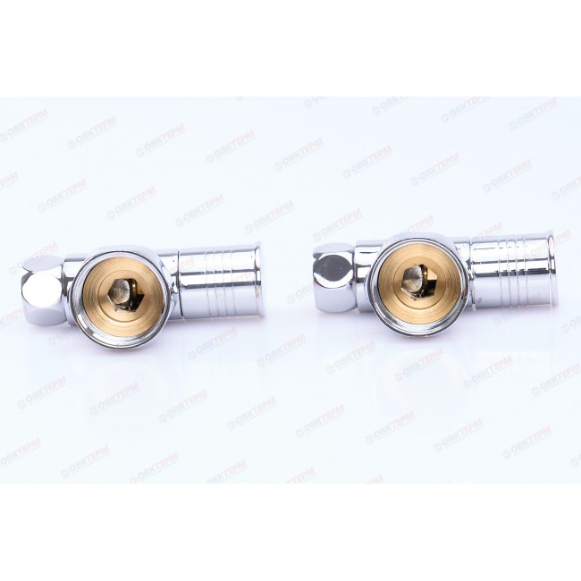 Вентиль угловой запорный, выполняет функцию регулирования температуры полотенцесушителя. В случае необходимости демонтажа полотенцесушителя - необходимо закрутить вентили до упора, что позволит демонтировать без отключения системы ГВС или отопления. 1"В x 1/2"В. Материал: латунь. Покрытие: хром