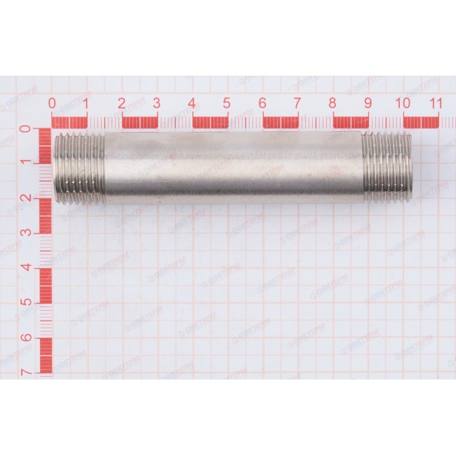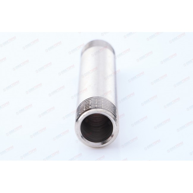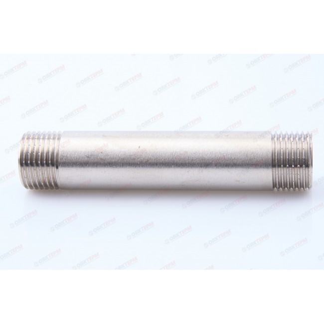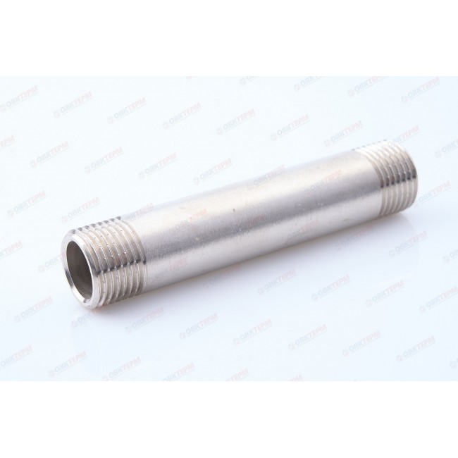 Латунный никелированный резьбовой фитинг с двухсторонней наружной трубной цилиндрической резьбой по ГОСТу 6357 (ISO 228, EN 10226). Длина – от 60 до 250 мм, диаметр – 1/2".