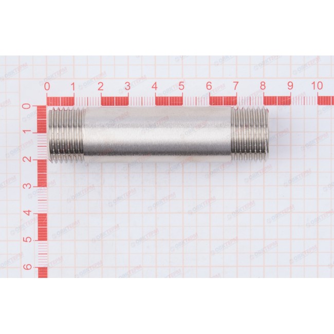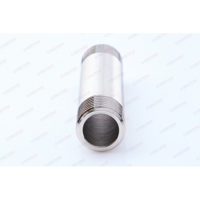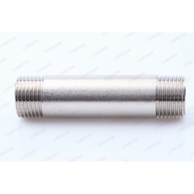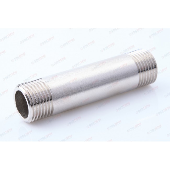 Латунный никелированный резьбовой фитинг с двухсторонней наружной трубной цилиндрической резьбой по ГОСТу 6357 (ISO 228, EN 10226). Длина – от 60 до 250 мм, диаметр – 1/2".