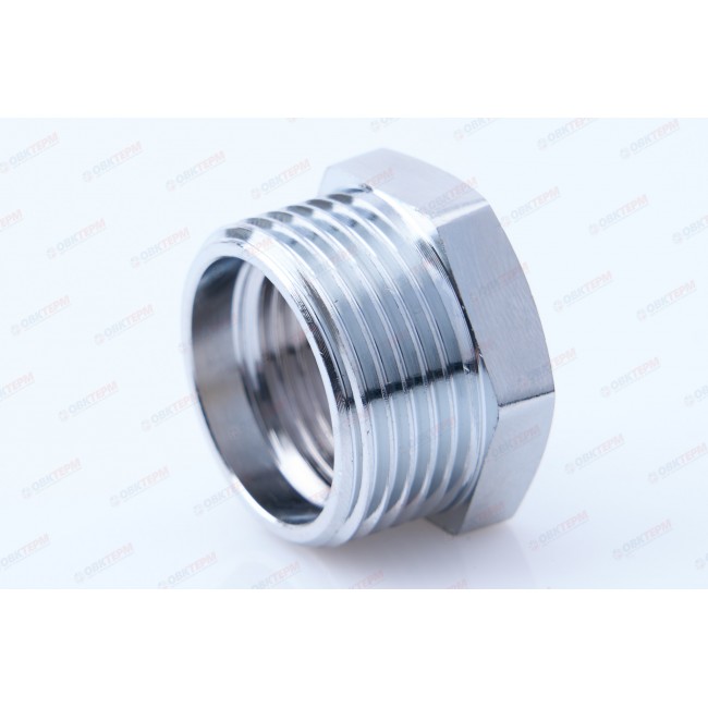 Количество в упаковке: 40шт. Футорка. Латунный. Покрытие: декоративное хромированное Присоединение: 3/4" наружная - 1/2" внутренняя.
