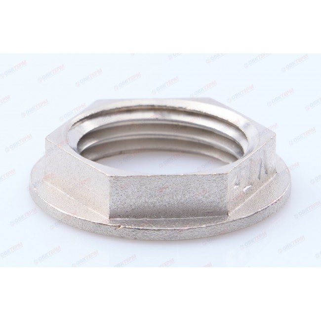 Количество в упаковке: 10шт. Контргайка – простой и эффективный вид гаечных замков, предназначенных для недопущения самопроизвольного раскручивания элементов резьбовых соединений (муфт, сгонов, пр.) при вибрации, гидравлических ударах. Реборда, выступающая за шестигранную часть гайки, увеличивает надежность фиксации, повышает герметичность, улучшает внешний вид соединения (скрывает волокна уплотнителя). Как и другие резьбовые фитинги VALTEC, контргайка с ребордой выполнена методом горячего штампования из латуни CW617N с последующим никелированием, имеет трубную цилиндрическую резьбу, совместимую с конической.