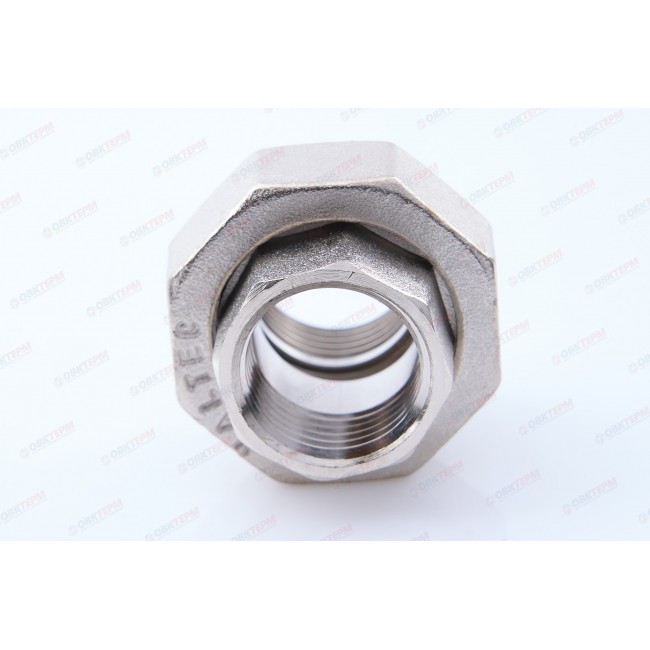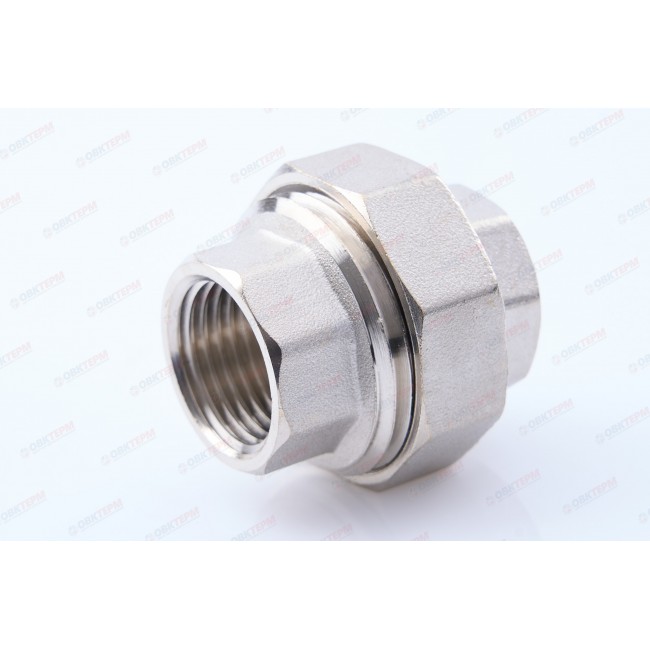 Количество в упаковке: 10шт. Латунная никелированная разъемная муфта. Резьба – внутренняя/внутренняя, цилиндрическая трубная по ГОСТу 6357 (ISO 228, EN 10226), совместима также с наружной конической трубной резьбой по ГОСТу 6211 (ISO R7). Соединение частей муфты осуществляется с помощью накидной гайки. Уплотнительное кольцо выполнено из синтетического каучука EPDM. Гайку следует накручивать с приложением момента не более 30 H•м.