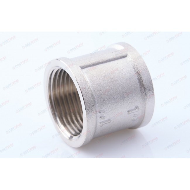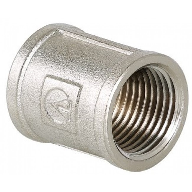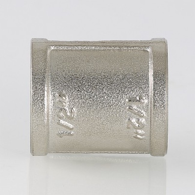 Количество в упаковке: 10шт. Соединительная муфта с внутренней резьбой. Изготовлена методом объемного горячего объемного прессования из сантехнической латуни марки CW617N (европейский стандарт EN12165) с гальваническим нанесением никелевого покрытия. Цилиндрическая трубная резьба муфты совместима также с наружной конической по ГОСТ 6211 (ISO R7). Максимальное избыточное давление применения фитинга определяется максимальной температурой рабочей среды, типоразмером изделия (условным диаметром до/более 1”): при 120 °С – 40/25, 200 – 3,0/2,7, 250 – 2,7/1,7 бар.