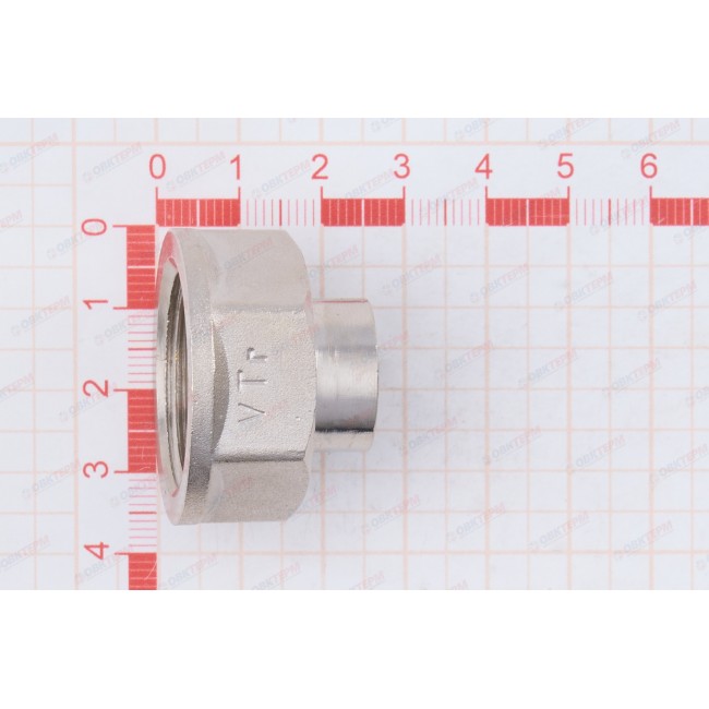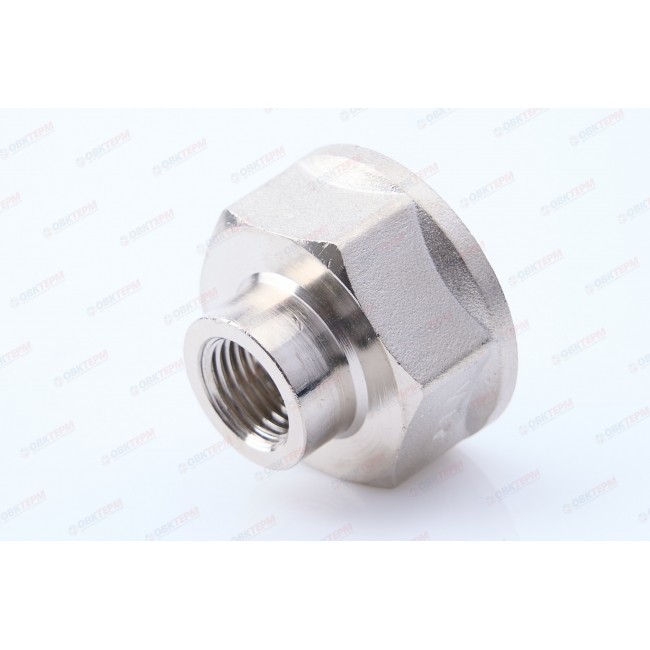 Латунная никелированная муфта для перехода с одного диаметра трубы на другой. Резьба – внутренняя/внутренняя, цилиндрическая трубная по ГОСТу 6357 (ISO 228, EN 10226), совместима также с наружной конической трубной резьбой по ГОСТу 6211 (ISO R7).