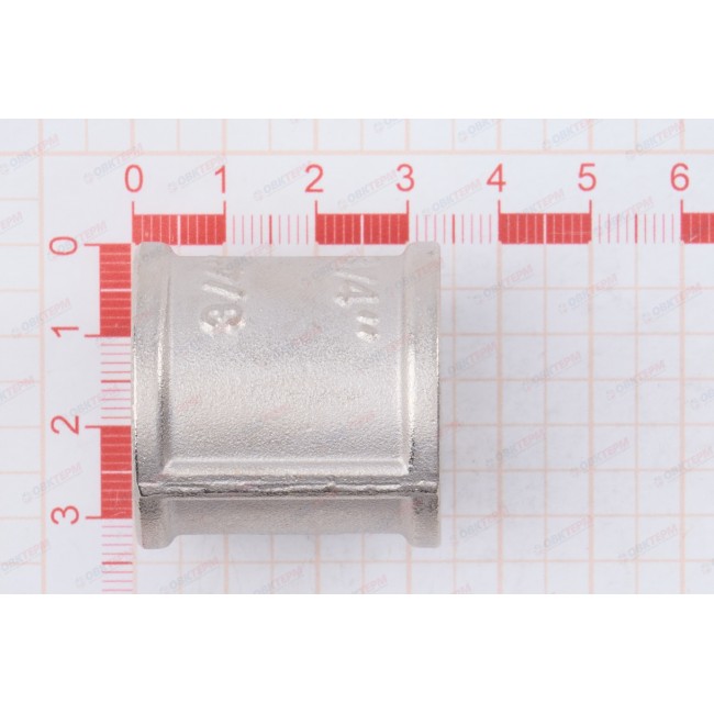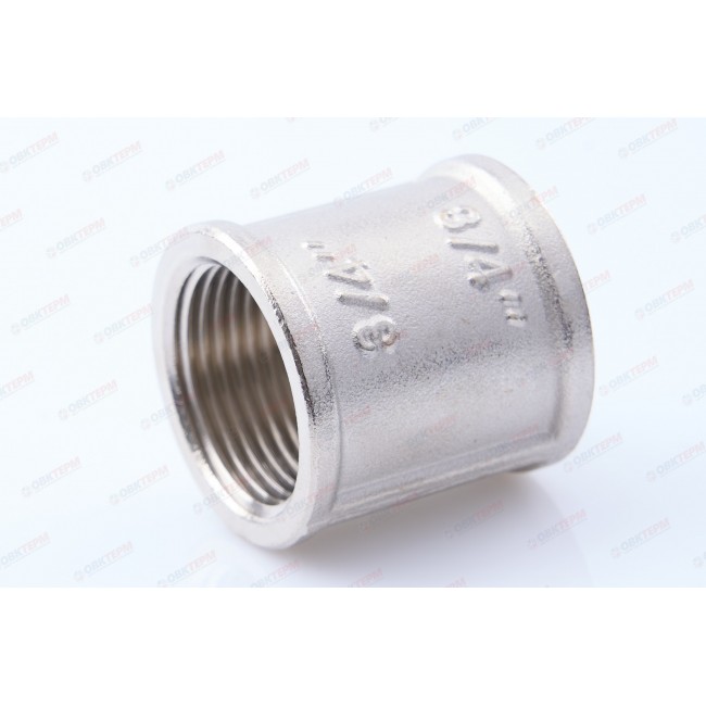 Количество в упаковке: 10шт. Соединительная муфта с внутренней резьбой. Изготовлена методом объемного горячего объемного прессования из сантехнической латуни марки CW617N (европейский стандарт EN12165) с гальваническим нанесением никелевого покрытия. Цилиндрическая трубная резьба муфты совместима также с наружной конической по ГОСТ 6211 (ISO R7). Максимальное избыточное давление применения фитинга определяется максимальной температурой рабочей среды, типоразмером изделия (условным диаметром до/более 1”): при 120 °С – 40/25, 200 – 3,0/2,7, 250 – 2,7/1,7 бар.