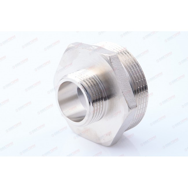 Ниппель переходной предназначен для перехода на другой диаметр резьбового соединения в трубопроводных системах их различных материалов с температурным режимом до 120С.Имеет с двух сторон наружную цилиндрическую резьбу и специальный участок шестигранной формы для его удобного удержания гаечным ключом