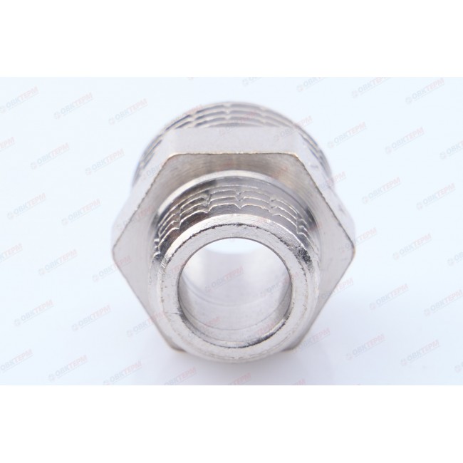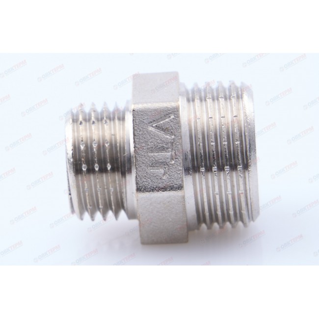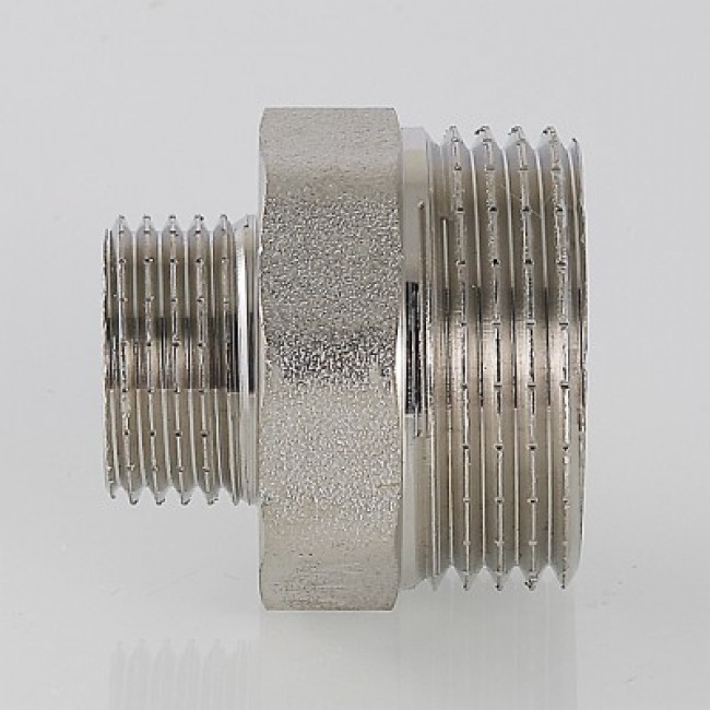 Количество в упаковке: 10шт. Резьбовой фитинг – ниппель переходной. Обеспечивает соединение элементов трубопровода разного диаметра. Выполнен из латуни CW617N (евростандарт EN12165) горячим штампованием с последующим никелированием. Резьба обоих патрубков – наружная (тип – цилиндрическая трубная, ГОСТ 6357, ISO 228, EN10226). Насечки на резьбе способствуют удержанию герметизирующего материала (например, сантехнического льна). Наличие шестигранного (под гаечный ключ) участка корпуса облегчает монтаж соединения. Максимальная температура использования ниппеля составляет 250 °С (при максимальном рабочем давлении 2,7/1,7 бар – для моделей условным диаметром до/более 1”).