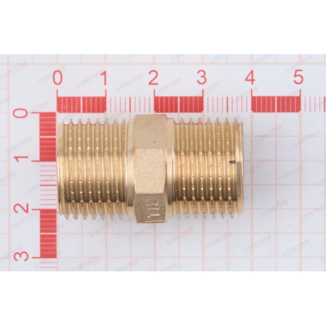 Количество в коробке: 320шт. Количество в упаковке: 10шт. Фитинг для соединения элементов трубопровода равного диаметра; Резьба – наружная/наружная, цилиндрическая трубная; Предусмотрен участок корпуса шестигранной формы, под гаечный ключ; Резьбовые соединительные детали используются для создания разъемных резьбовых соединений на трубопроводах холодного питьевого, хозяйственного и горячего водоснабжения, отопления, сжатого воздуха и на технологических трубопроводах, транспортирующих газы и жидкости, неагрессивные к материалу соединителей. Соединители могут применяться на трубопроводах, выполненных из любого материала (сталь, медь, латунь, пластик, металлополимер, полипропилен и т.п.).
