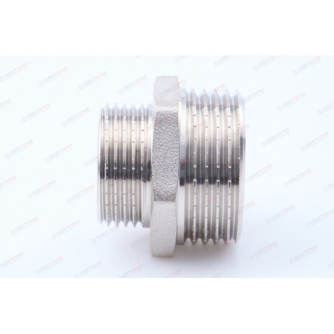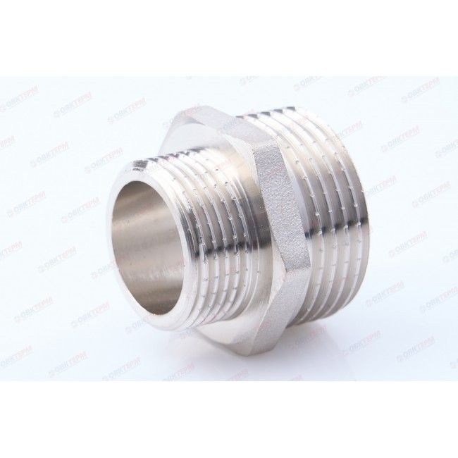 Ниппель переходной предназначен для перехода на другой диаметр резьбового соединения в трубопроводных системах их различных материалов с температурным режимом до 120С.Имеет с двух сторон наружную цилиндрическую резьбу и специальный участок шестигранной формы для его удобного удержания гаечным ключом.