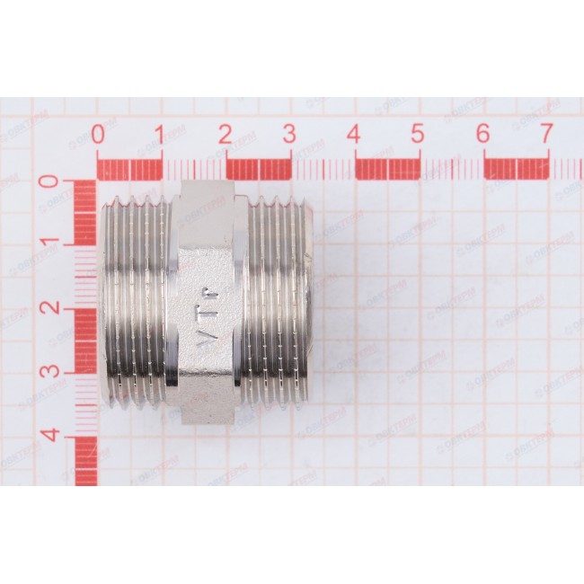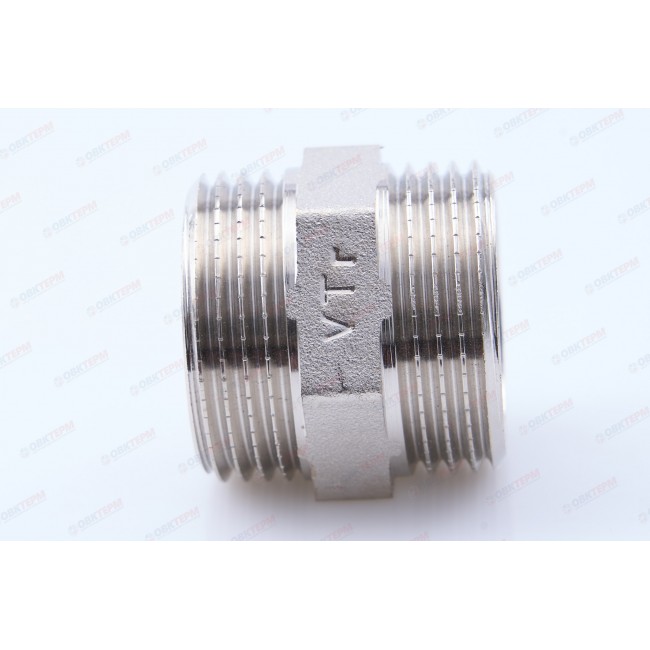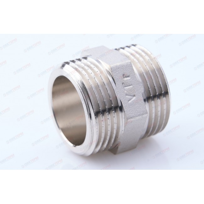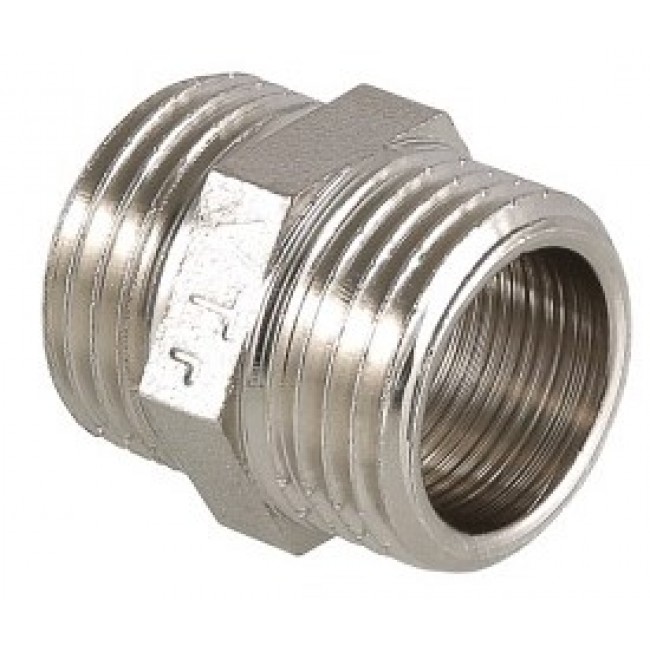Количество в упаковке: 10шт. Латунный никелированный фитинг для соединения элементов трубопровода равного диаметра. Резьба – наружная/наружная, цилиндрическая трубная по ГОСТу 6357 (ISO 228, EN 10226). Предусмотрен участок корпуса шестигранной формы, под гаечный ключ.