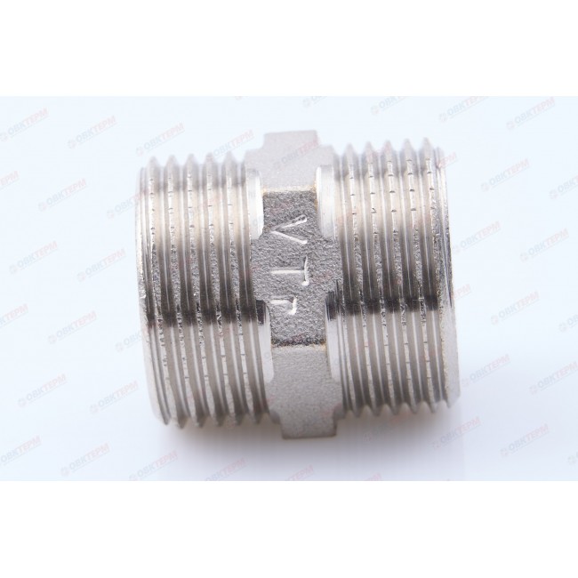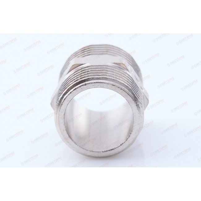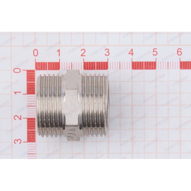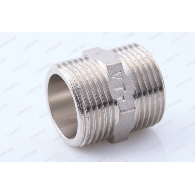 Количество в упаковке: 10шт. Латунный никелированный фитинг для соединения элементов трубопровода равного диаметра. Резьба – наружная/наружная, цилиндрическая трубная по ГОСТу 6357 (ISO 228, EN 10226). Предусмотрен участок корпуса шестигранной формы, под гаечный ключ.