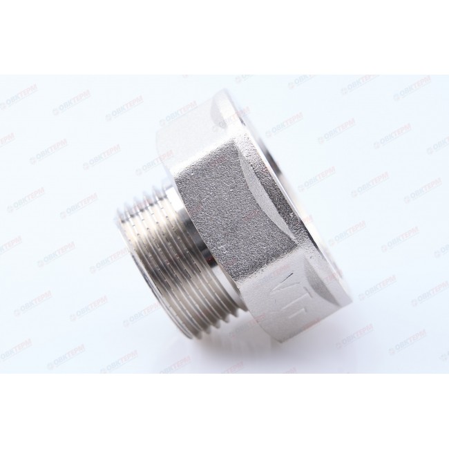 Количество в упаковке: 10шт. Назначение фитинга – переход с внутренней резьбы на наружную (больший/меньший диаметр). Переходник изготовлен горячим штампованием из латуни CW617N с последующим никелированием. Корпус фитинга – шестигранный – под гаечный ключ. Резьба – трубная цилиндрическая, совместимая с наружной конической по ГОСТу 6211. Номинальное давление – 40/25 бар (для типоразмеров до/более 1”). Максимальное рабочее давление при температуре среды 250 °С – 2,7/1,7 бара. Переходник применим на стальных, медных, латунных, пластиковых, металлопластиковых трубопроводах.