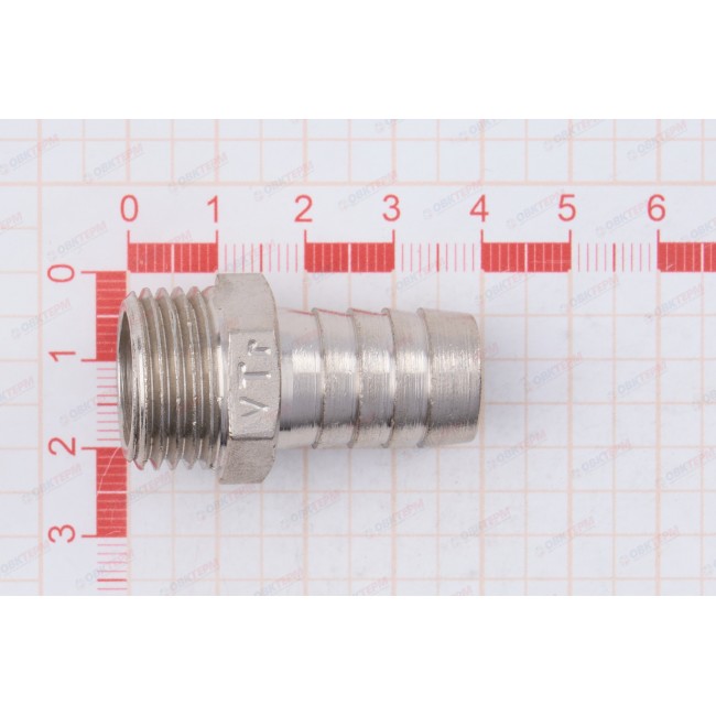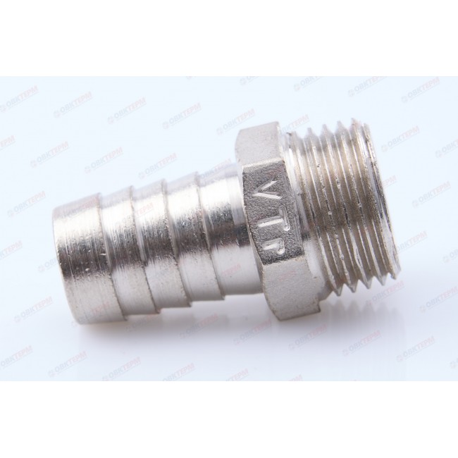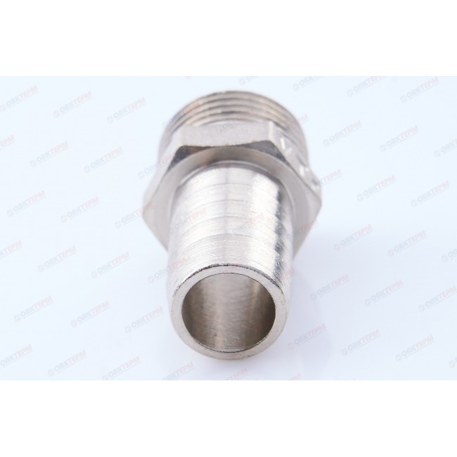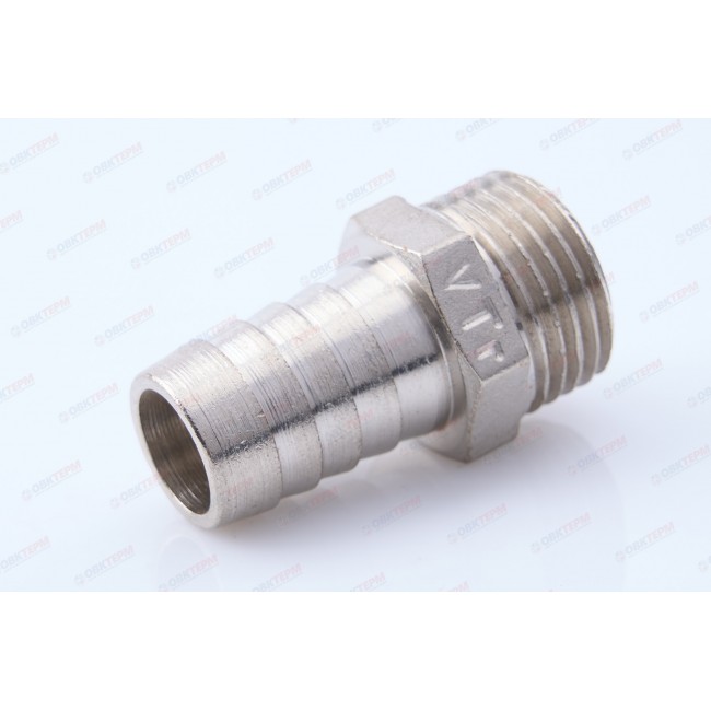 Основное назначение резьбового фитинга со штуцером – подключение к водозапорной арматуре, непосредственно к трубопроводам поливочного шланга. Изделие можно применять также в других системах с неагрессивной к используемым материалам рабочей средой (горячая вода, незамерзающий теплоноситель, сжатый воздух и т.д.). Фитинг выполнен из сантехнической латуни CW617N, защищенной никелевым гальванопокрытием.