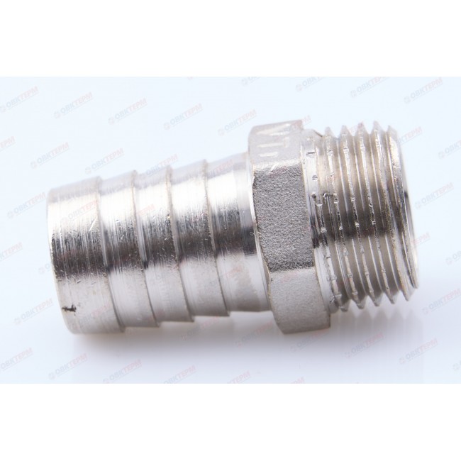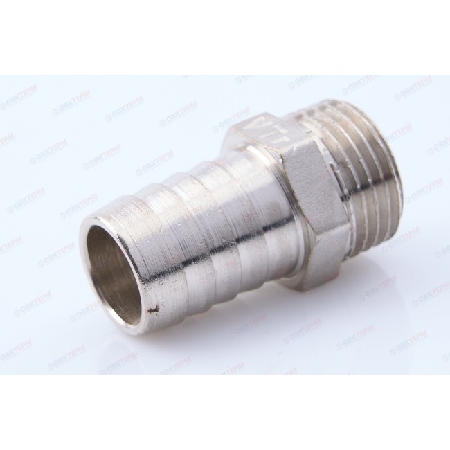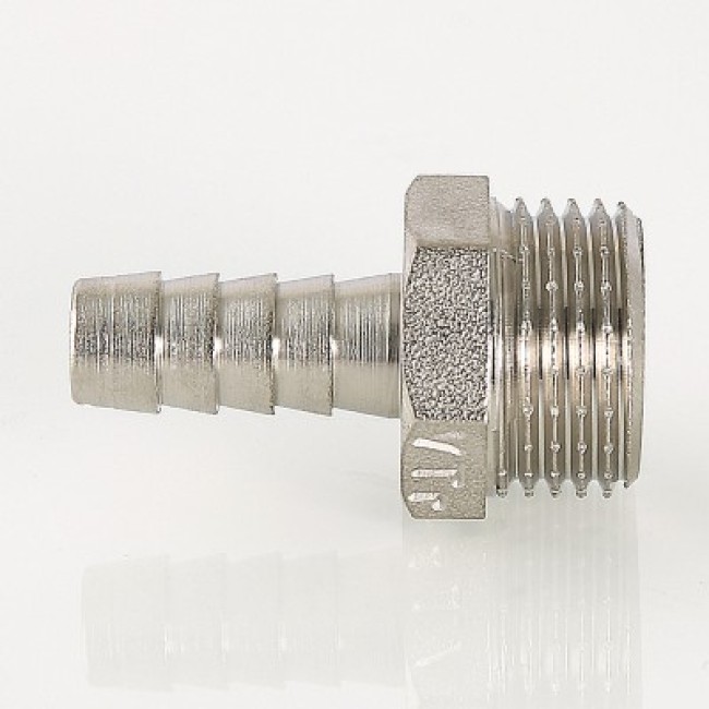 Основное назначение резьбового фитинга со штуцером – подключение к водозапорной арматуре, непосредственно к трубопроводам поливочного шланга. Изделие можно применять также в других системах с неагрессивной к используемым материалам рабочей средой (горячая вода, незамерзающий теплоноситель, сжатый воздух и т.д.). Фитинг выполнен из сантехнической латуни CW617N, защищенной никелевым гальванопокрытием.