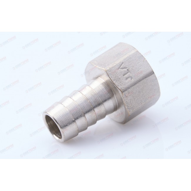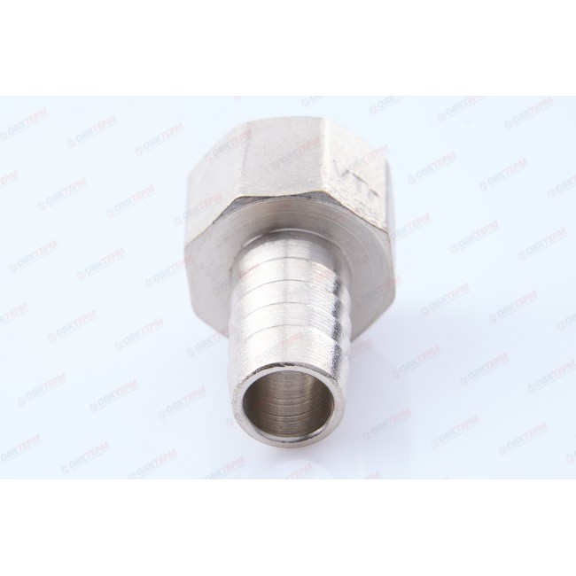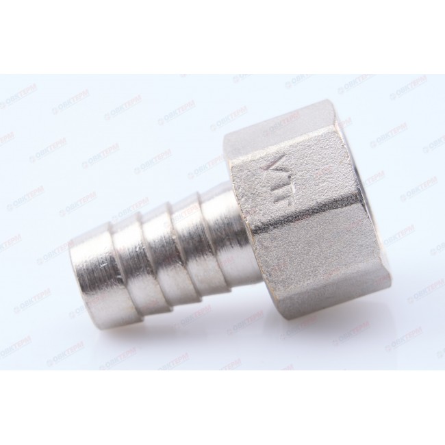Штуцер для шланга с внутренней резьбой изготовлен из высококачественной сантехнической латуни марки CW617N методом горячего прессования с нанесением защитного гальванического покрытия (никель). Резьба фитинга – дюймовая, диаметром 1/2 или 3/4". Размеры штуцера – от 10 до 20 мм (с шагом 2 мм).Соединитель позволяет подключить шланг (поливочный либо другого назначения) к стальной трубе с нарезанной резьбой или патрубку водопроводной арматуры с наружной резьбой напрямую, без использования какого-либо переходного элемента.