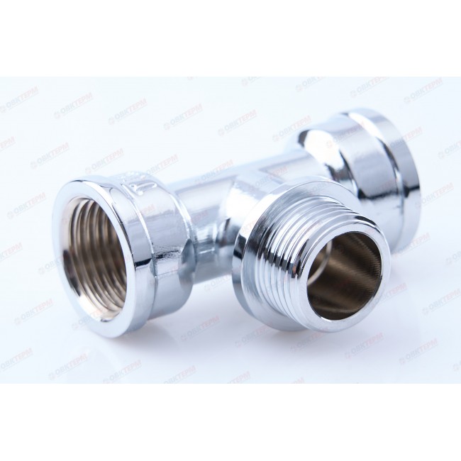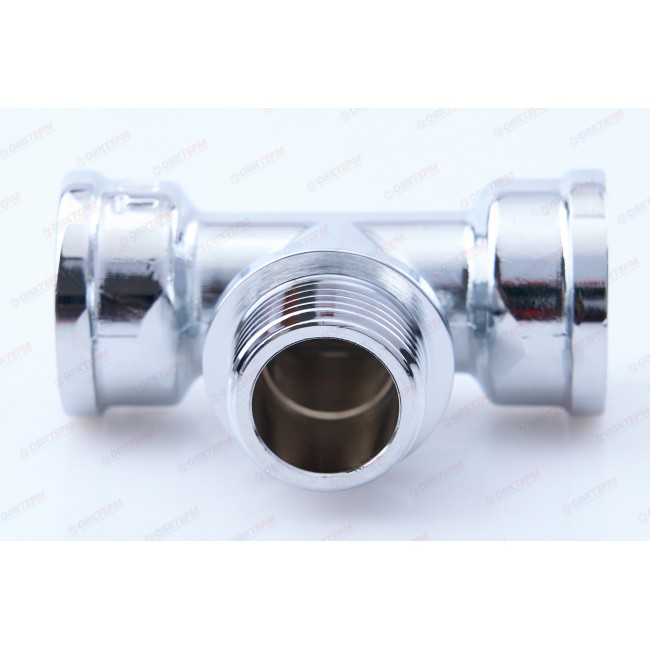 Количество в упаковке: 20шт. Тройник переходной. Латунный. Покрытие: декоративное хромированное Присоединение: 1/2" внутренняя - 1/2" наружная - 1/2" внутренняя.