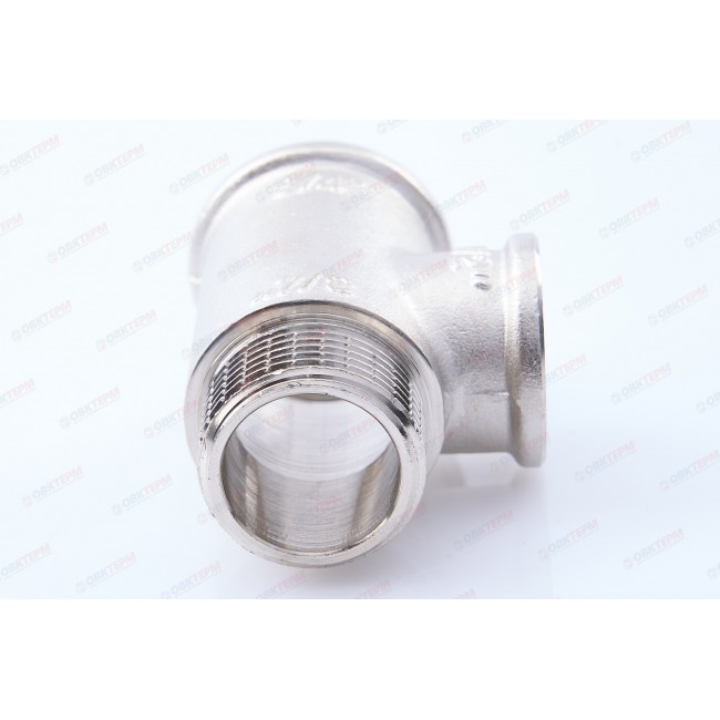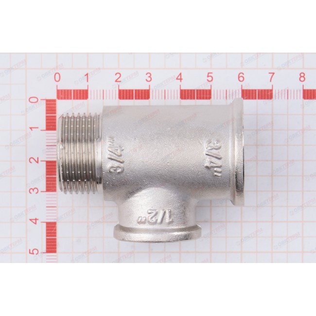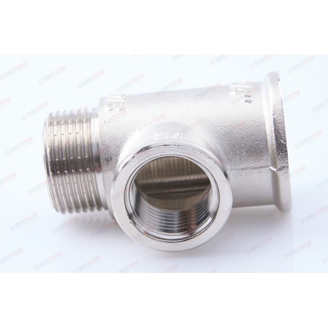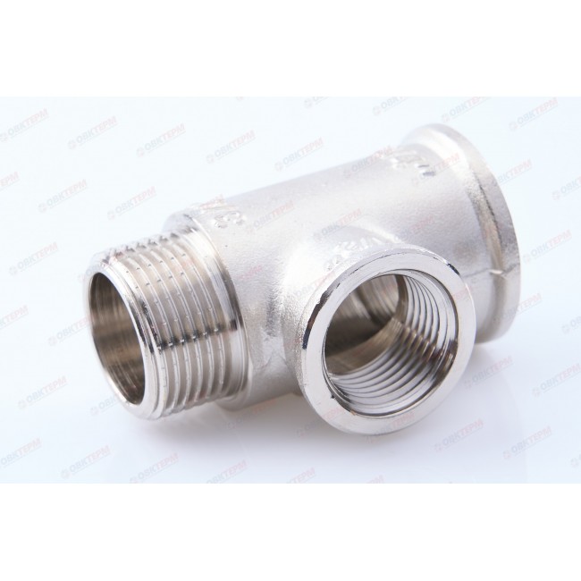 Резьбовой фитинг – тройник переходной с наружной резьбой изготовлен из латуни марки CW617N методом горячего штампования с последующим нанесением никелевого гальванопокрытия. Применяется для создания разъемных резьбовых соединений на трубопроводах из стальных, медных, латунных, пластиковых и металлопластиковых труб. Комбинация присоединительных патрубков данной модели позволяет смонтировать участок трубопровода соответствующей конфигурации без дополнительных соединителей. Резьба фитинга – трубная цилиндрическая по ГОСТу 6357 (ISO 228, EN 10226), имеет насечки для эффективного удержания уплотнительного материала.