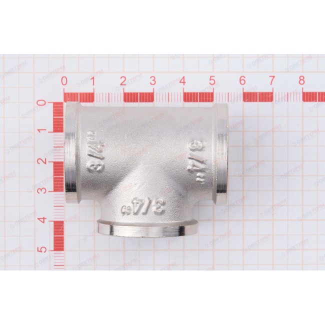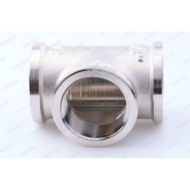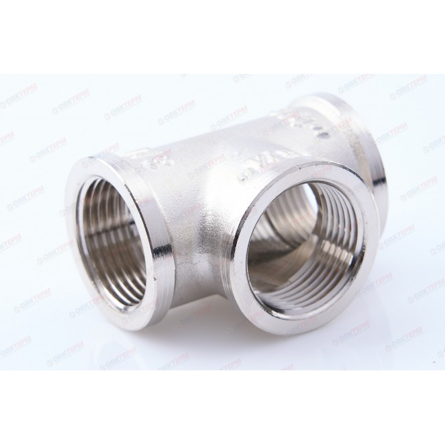 Количество в упаковке: 10шт. Латунный никелированный трехсторонний фитинг, равнопроходной. Резьба – внутренняя, цилиндрическая трубная по ГОСТу 6357 (ISO 228, EN 10226), совместимая также с наружной конической трубной резьбой по ГОСТу 6211 (ISO R7).