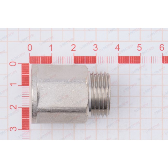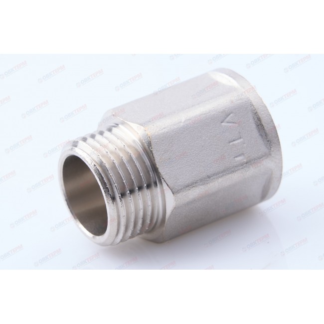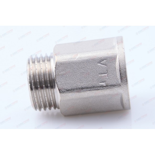 Количество в упаковке: 10шт. Латунный никелированный фитинг для удлинения соединений на 10–50 мм (в зависимости от модели). Форма корпуса – шестигранная, под гаечный ключ. Резьба – внутренняя/наружная, цилиндрическая трубная по ГОСТу 6357 (ISO 228, EN 10226), совместимая также с наружной конической трубной резьбой по ГОСТу 6211 (ISO R7).
