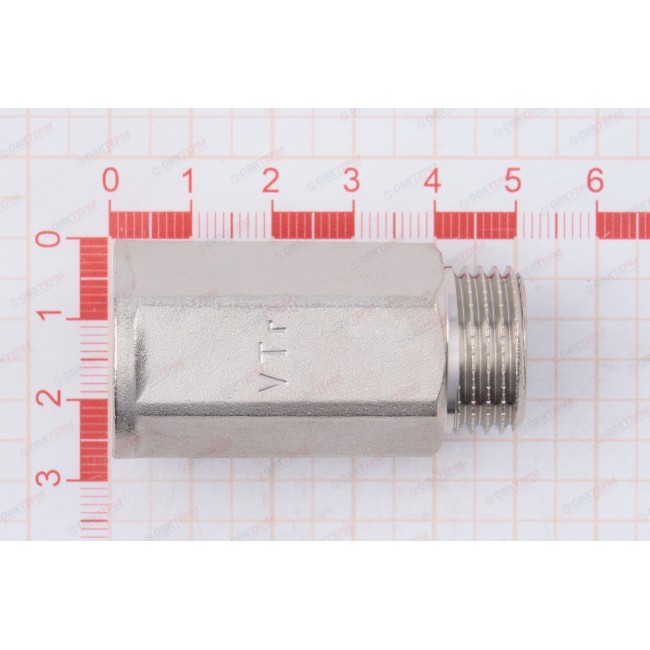 Количество в упаковке: 10шт. Латунный никелированный фитинг для удлинения соединений на 10–50 мм (в зависимости от модели). Форма корпуса – шестигранная, под гаечный ключ. Резьба – внутренняя/наружная, цилиндрическая трубная по ГОСТу 6357 (ISO 228, EN 10226), совместимая также с наружной конической трубной резьбой по ГОСТу 6211 (ISO R7).