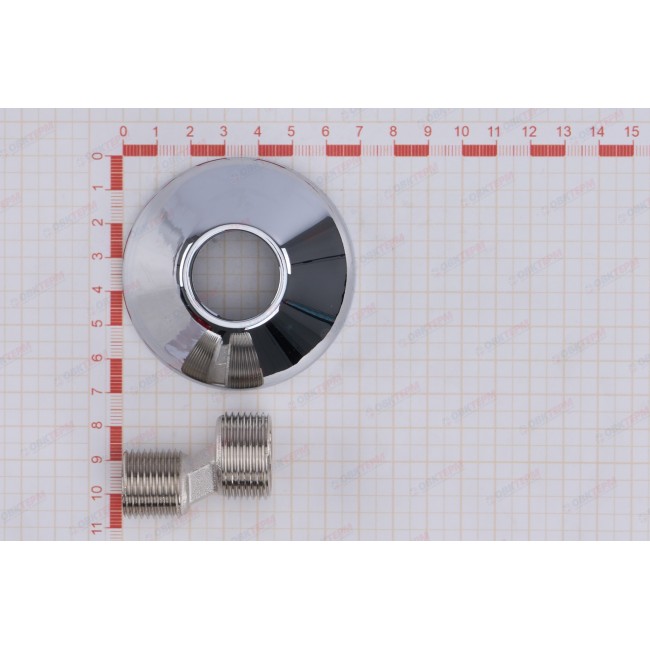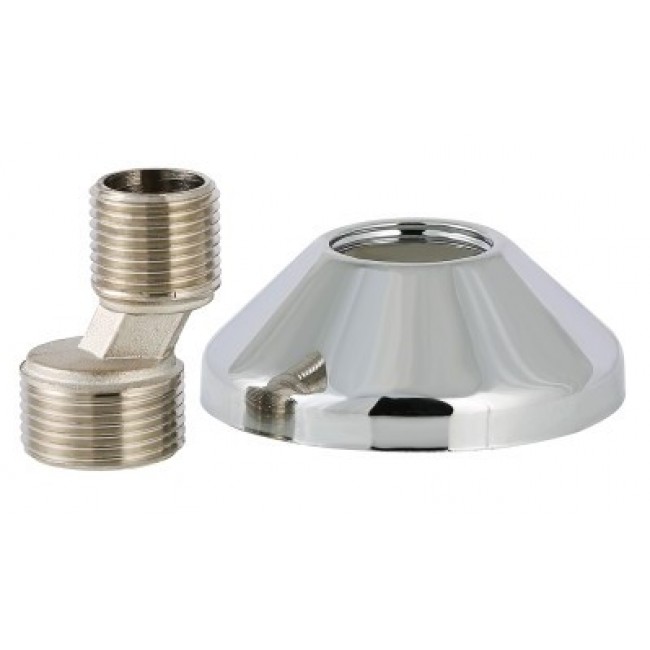 Укомплектованные декоративными латунными чашками резьбовые эксцентрики обеспечивают беспроблемное подключение к водопроводу сантехнических смесителей. Применение изделий дает возможность компенсировать неточности при размещении водорозеток либо резьбовых патрубков стального водопровода, скорректировать положение смесителя в пространстве. Материалом фитинга, изготовленного методом горячего объемного штампования, служит высококачественная латунь марки CW617N. Гальванопокрытие соединителей – никелевое, чашек – хромовое.