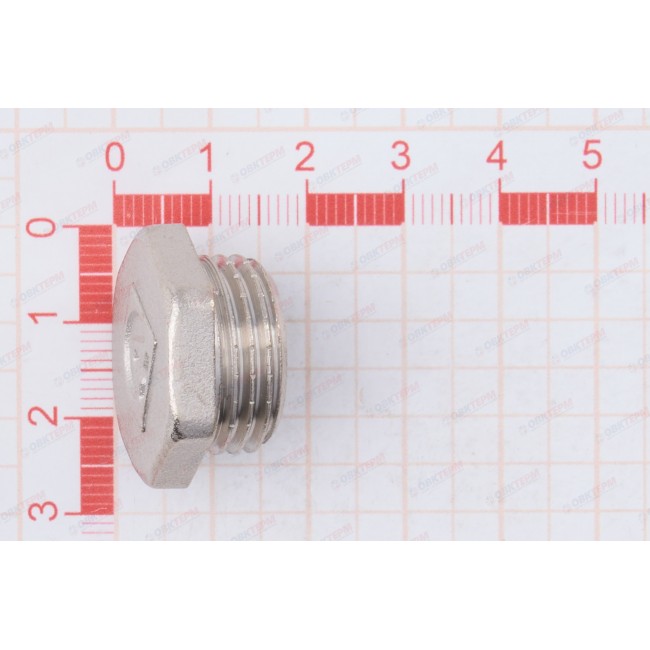 Количество в упаковке: 10шт. Латунная никелированная трубопроводная пробка с шестигранной головкой. Имеет наружную трубную цилиндрическую резьбу по ГОСТу 6357 (ISO 228, EN 10226).
