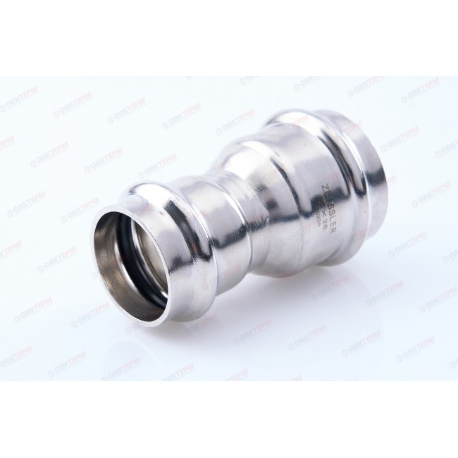 Количество в коробке: 90шт. Количество в упаковке: 5шт. Двухраструбная пресс-муфта из нержавеющей стали предназначена для соединения тонкостенных стальных труб в системах водоснабжения, отопления, других инженерных и технологических установках с рабочей температурой.