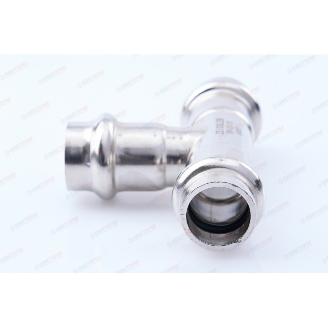 Количество в коробке: 80шт. Количество в упаковке: 5шт. Трехраструбный пресс-тройник из нержавеющей стали обеспечивает соединение трех тонкостенных стальных труб систем водоснабжения, отопления, иных инженерных и технологических установок с рабочей температурой до 95 °С и давлением до 16 бар. Изделие изготовлено из стали AISI 304. Материал уплотнительных колец – эластомер EPDM Sh70. Благодаря бесштуцерной конструкции соединитель обладает малым коэффициентом местного сопротивления – сужение канала практически отсутствует. Фитинг рассчитан на обжатие с помощью пресс-инструмента V-профиля.