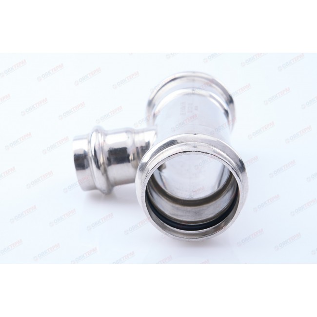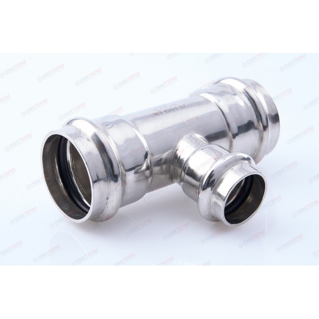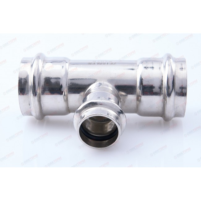 Количество в коробке: 30шт. Количество в упаковке: 5шт. Трехраструбный пресс-тройник из нержавеющей стали обеспечивает соединение трех тонкостенных стальных труб систем водоснабжения, отопления, иных инженерных и технологических установок с рабочей температурой до 95 °С и давлением до 16 бар. Изделие изготовлено из стали AISI 304. Материал уплотнительных колец – эластомер EPDM Sh70. Благодаря бесштуцерной конструкции соединитель обладает малым коэффициентом местного сопротивления – сужение канала практически отсутствует. Фитинг рассчитан на обжатие с помощью пресс-инструмента V-профиля.