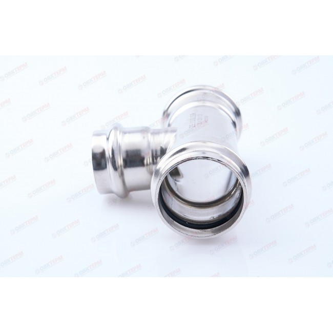 Количество в коробке: 30шт. Количество в упаковке: 5шт. Трехраструбный пресс-тройник из нержавеющей стали обеспечивает соединение трех тонкостенных стальных труб систем водоснабжения, отопления, иных инженерных и технологических установок с рабочей температурой до 95 °С и давлением до 16 бар. Изделие изготовлено из стали AISI 304. Материал уплотнительных колец – эластомер EPDM Sh70. Благодаря бесштуцерной конструкции соединитель обладает малым коэффициентом местного сопротивления – сужение канала практически отсутствует. Фитинг рассчитан на обжатие с помощью пресс-инструмента V-профиля.