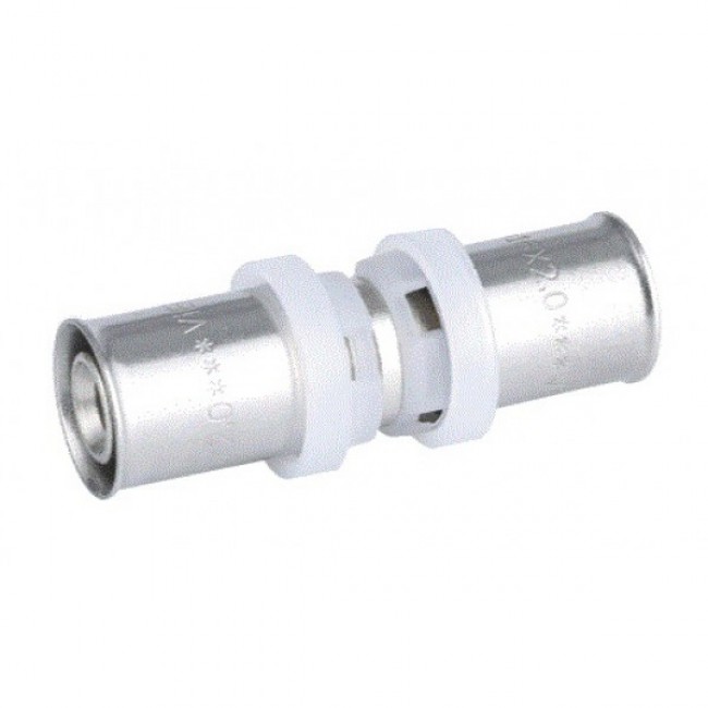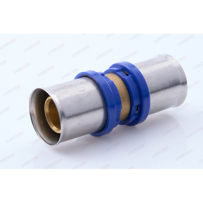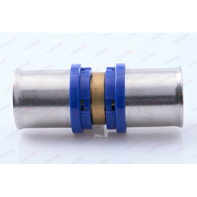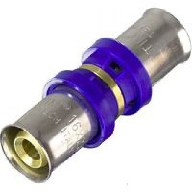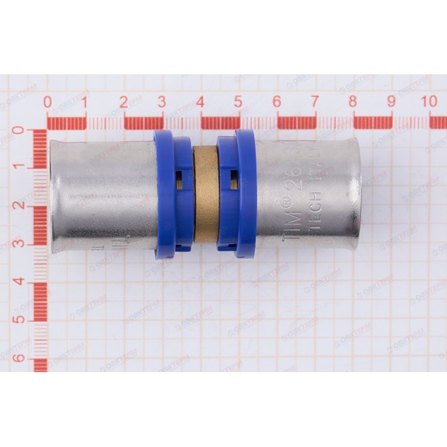 Пресс фитинг для металлопластиковых труб TIM — соединитель с трубы 26 (2.6 мм) на такую же трубу 26 (2.6 мм), монтируемый с использованием специального инструмента. Кроме соединения металлопласта этим способом можно соединять PEX и PE-RT трубы такого же диаметра и толщины стенки. Конструкция после выполнения работ получается неразъемной.