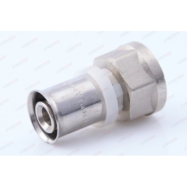 Количество в упаковке: 10шт. Пресс-фитинг с переходом на внутреннюю резьбу применяется в качестве соединителя металлопластиковой (металлополимерной) либо PEX-трубы и элемента системы с резьбовым патрубком – крана, клапана и т.д. Областью применения фитинга являются системы водоснабжения, отопления, трубопроводы технологического назначения, транспортирующие среды, которые неагрессивны к латуни, материалу уплотнений (EPDM), используемой трубы. Корпус изделия никелирован. Пресс-гильза изготовлена из нержавеющей стали AISI 304, фиксатор – из нейлона. Резьба – внутренняя, соответствует ГОСТу 6357. Опрессовка гильзы фитинга производится пресс-инструментом с насадками «ТН».