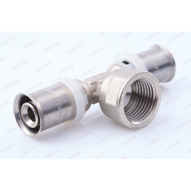 Количество в упаковке: 10шт. Пресс-фитинг – тройник с переходом на внутреннюю резьбу служит для присоединения к металлопластиковым (металлополимерным) трубам и трубам из сшитого полиэтилена элемента системы, имеющего наружную резьбу. Резьба фитинга – трубная по ГОСТу 6357.