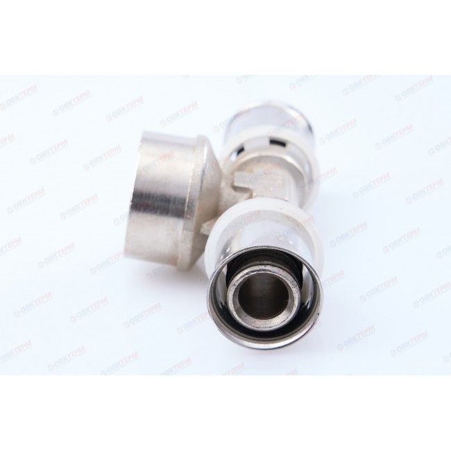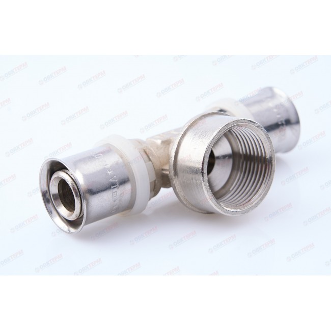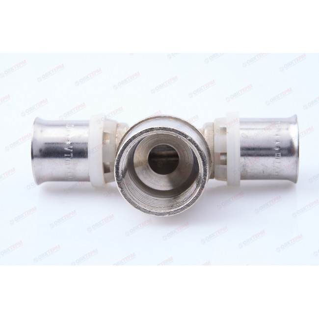 Количество в упаковке: 5шт. Пресс-фитинг – тройник с переходом на внутреннюю резьбу служит для присоединения к металлопластиковым (металлополимерным) трубам и трубам из сшитого полиэтилена элемента системы, имеющего наружную резьбу. Резьба фитинга – трубная по ГОСТу 6357.