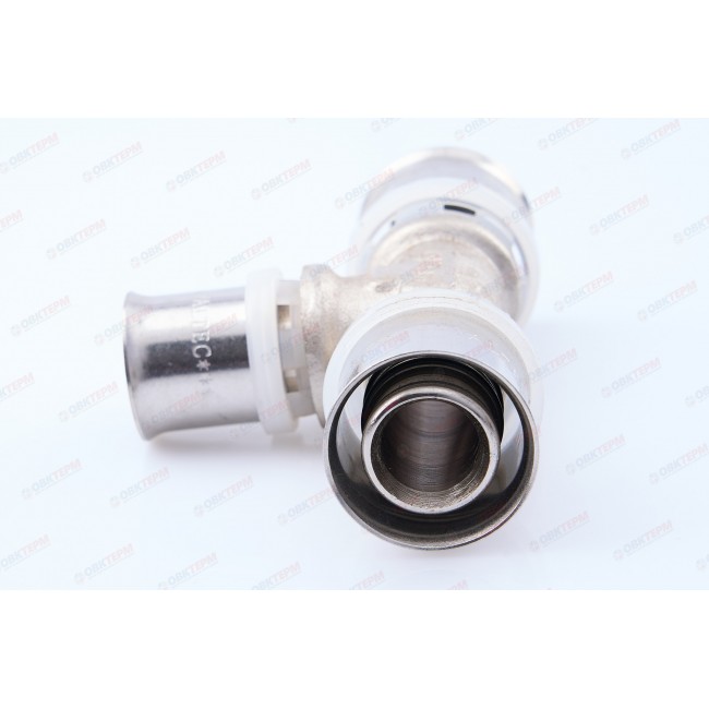 Количество в упаковке: 5шт. Пресс-фитинг – тройник предназначен для соединения трех труб – металлопластиковых либо из сшитого полиэтилена. Корпус выполнен из сантехнической латуни марки CW617N, уплотнительные кольца штуцеров – из EPDM плотностью 1,22 г/см3, пресс-гильзы – из нержавеющей стали. Нейлоновая обойма выполняет функции фиксатора гильзы, направляющей для пресс-насадок и диэлектрической прокладки, прерывающей контакт между алюминием трубы и латунью корпуса. Конструкция пресс-фитингов VALTEC обеспечивает повышенную пропускную способность, надежность соединений, прочность и термостойкость. Монтаж фитинга производится пресс-инструментом с насадкой «ТН». Типоряд содержит равнопроходные и переходные пресс-тройники.