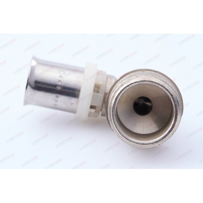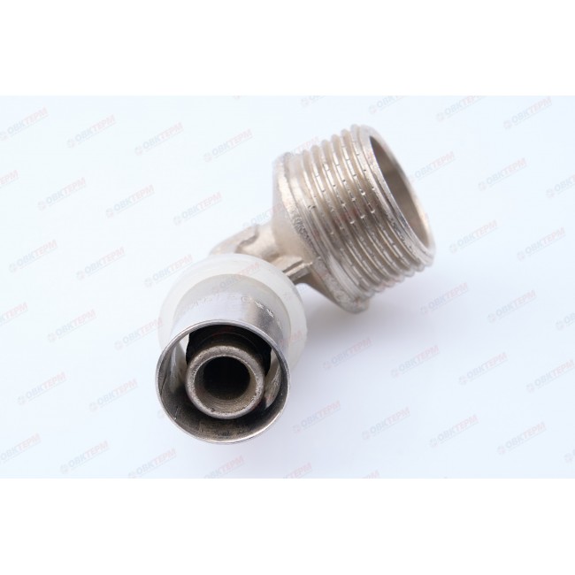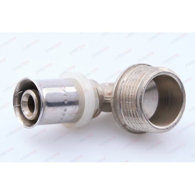 Количество в упаковке: 10шт. Угловой пресс-фитинг для подсоединения к металлопластиковой трубе (металлополимерная труба) или трубе из сшитого полиэтилена компонента системы с резьбовым подключением. Резьба фитинга – наружная трубная по ГОСТу 6357.