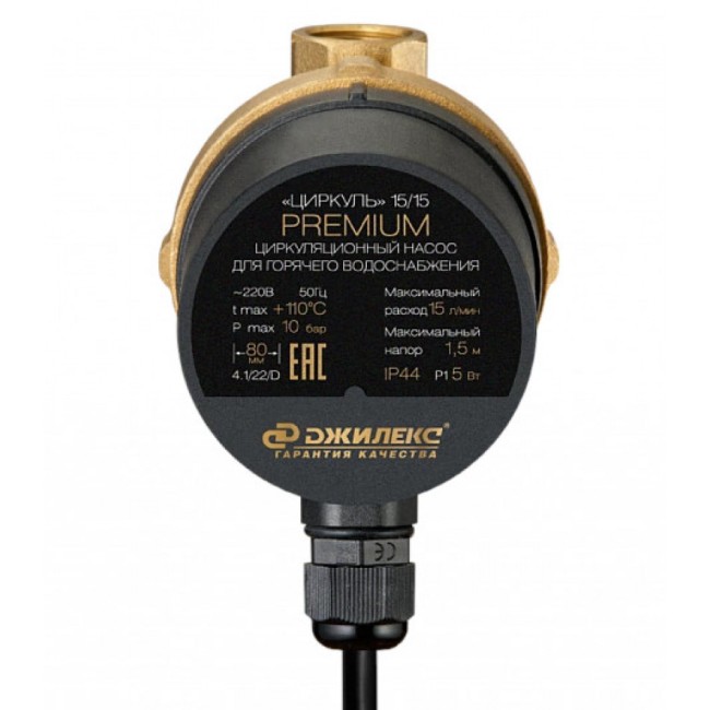 Циркуляционный насос для ГВС ЦИРКУЛЬ 15/15 Premium Джилекс предназначен для циркуляции и рециркуляции горячей воды в системах водоснабжения. Обеспечивает равномерное распределение температуры воды на протяжении всего контура горячего водоснабжения.