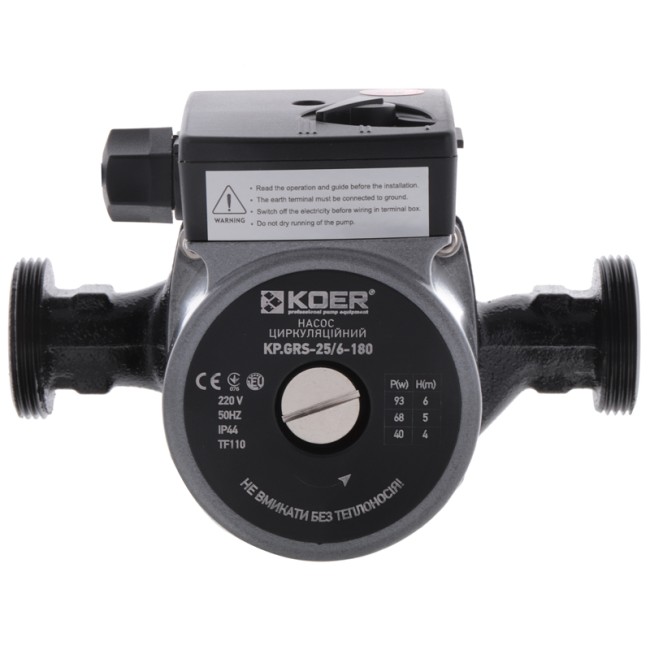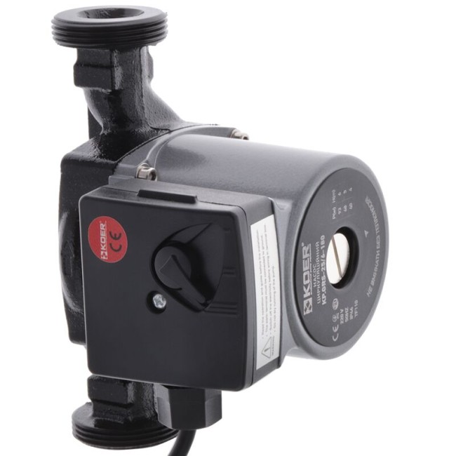 Циркуляционные насосы KOER предназначены для создания принудительной циркуляции теплоносителя в открытых и закрытых системах отопления зданий и сооружений любого назначения в качестве рабочей среды может использоваться вода и гликолесодержащие (до 50%) жидкости, не содержащие добавки, агрессивные к материалам насоса и нерастворимые механические примеси. Корпус насоса выполнен из чугуна; обмотка статора-медь, рабочее колесо — технополимер, вал двигателя — керамика. Так же насосы снабжены устройством защиты от перегрева.