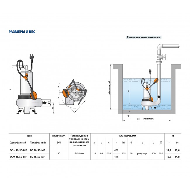 Погружные электронасосы BC-MF рекомендуются для дренажа загрязнённых сточных вод в бытовом секторе, коммунальном хозяйстве и промышленности. Они оснащены ДВУХКАНАЛЬНЫМ рабочим колесом, обеспечивающим перекачивание