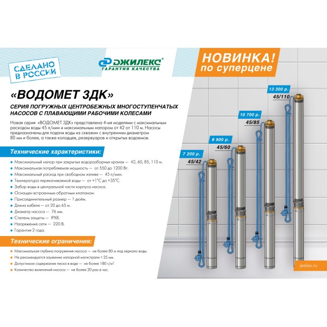 Погружной насос Водомет 3ДК 45/60 45л.м./60м Джилекс