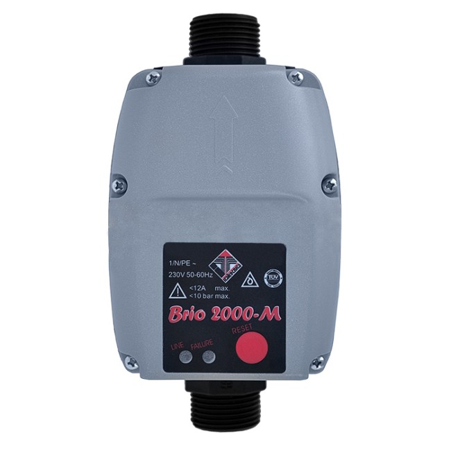 Предназначен для автоматического включения и отключения насосов в системах бытового водоснабжения, а также для их защиты от сухого хода. Давления включения насоса настраивается в пределах от 1,5 до 3,5 бар, давление выключения не регулируется. Подходит для работы только с чистой водой. Снабжен манометром, электрическим кабелем и функцией автоматического перезапуска после возникновения ошибок. На входе устройства кабель со свободным концом — для коммутации с насосом, на выходе — кабель с вилкой на конце.