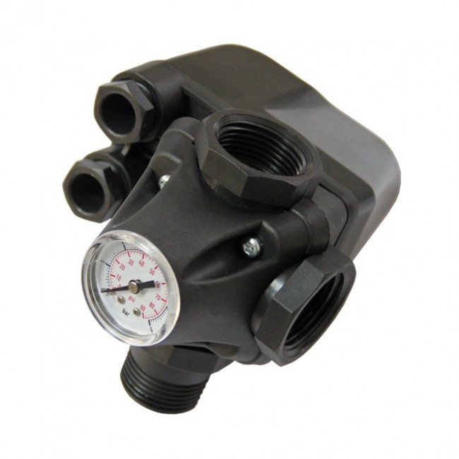 Автоматика, реле давления для насосных станций предназначено для управления давлением воды в электрических насосах.Комплектация: Автоматика, манометр, пятерник.Автоматика - Реле давления - предназночено для автоматизации работы насоса, влкючая его при понижении давления в системе водоснабжения ниже установленного предела, и отключая насос пр достижении верхнего установленного предела.Принцип работы : После прекращения разбора воды потребителями давление воды в системе растет до верхнего предела реле давления.Реле давления выключает насос. При потреблении вода мгновенно поступает из системы под давлением.По мере расхода воды давление в системе падает до нижнего предела настройки реле давления, после чего реле давления вллючает насос. 250v. Уровень тока 16а (10а). Уровень давления 1 - 5.5 бар. Заводская настройка давления 1.4 - 2.8 бар. Внешние температуры 0 - 55 *С. Резьбовое соединение 1/4"