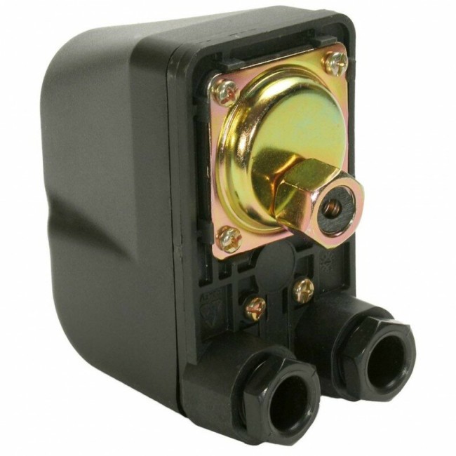Реле давления ( с накидной гайкой). Коммутационное устройство, предназначенное для автоматизации работы электронасосов водоснабжения.Реле включает и выключает насос при занижении и превышении заданных значений минимального и максимального давления.Заводская настройка - 2, 1/3, 5 бара.Пользователь может изменить ее по своему усмотрению в диапазоне 1,0 - 5,3 бара (минимальная разница значения - 1,0 бара). Напряжение питания 220В. Частота переменного тока 50Гц. Максимальный коммутируемый ток 16А. Рабочий диапазон давлений 1,0 + 5,3 Бар. Заводская настройка давления 2.1 - 3.5 Бар. Класс защиты IP44. Присоединительная разьба 1/4 дюйма