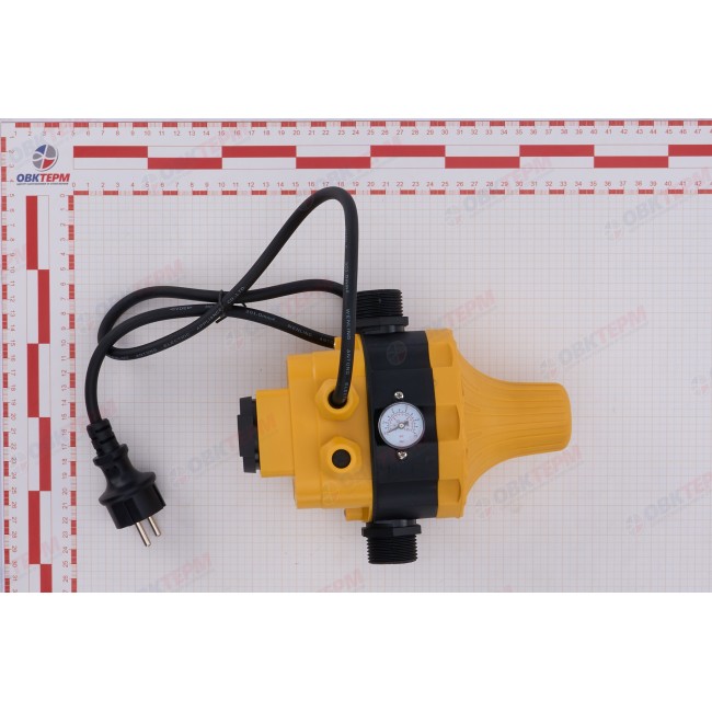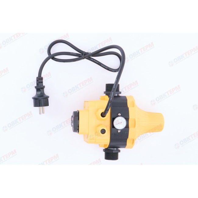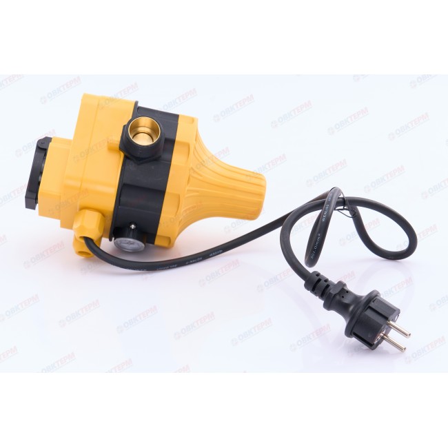 Электронное реле автоматизации насоса с неизменяемыми значениями давлений, с вилкой и розеткой.
